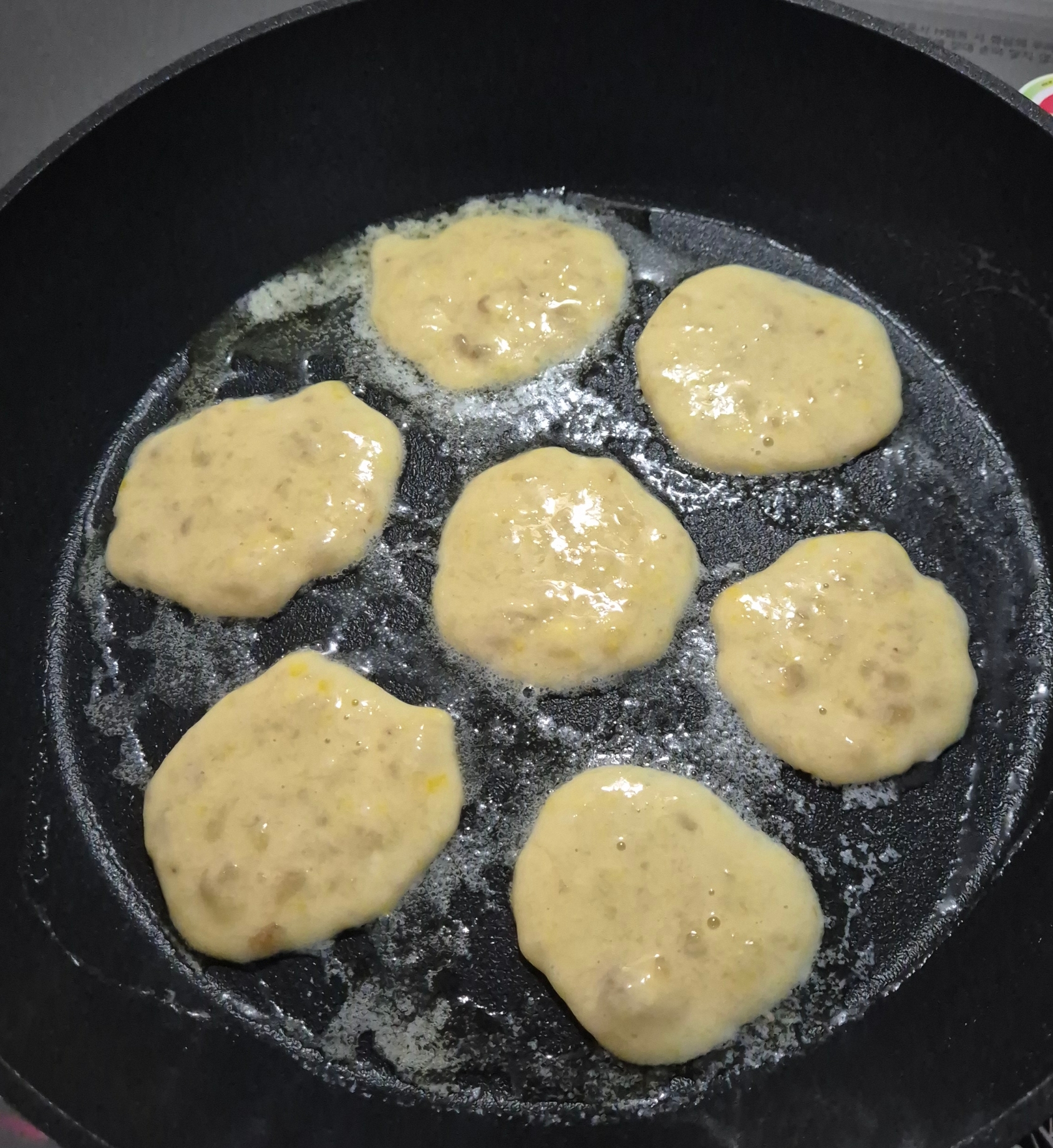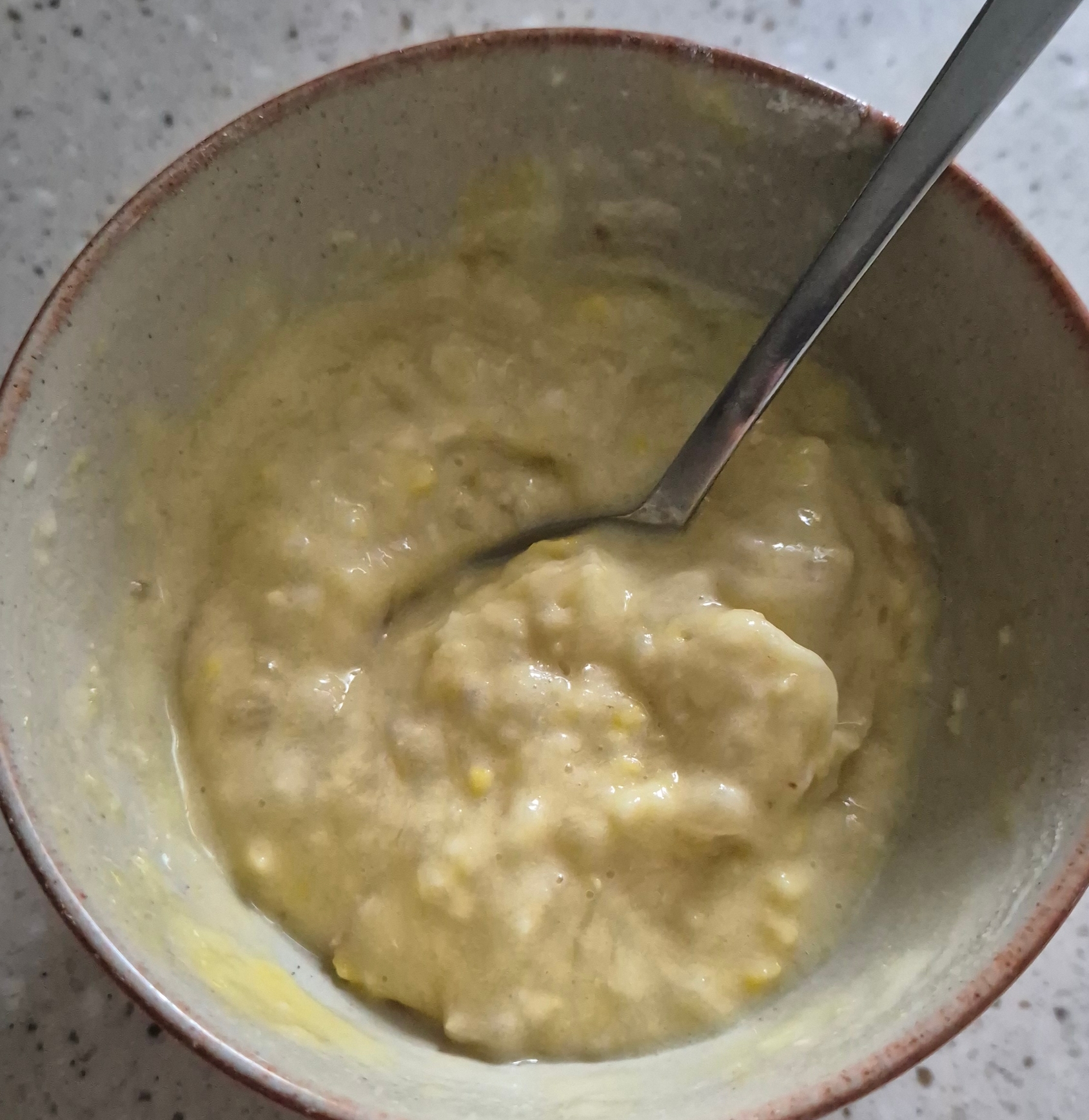 으깬 바나나에 밀가루 2스푼정도, 계란 하나 깨서